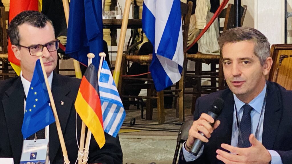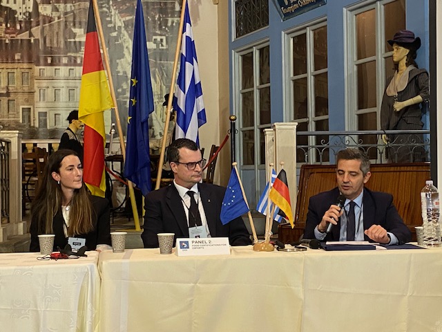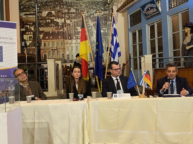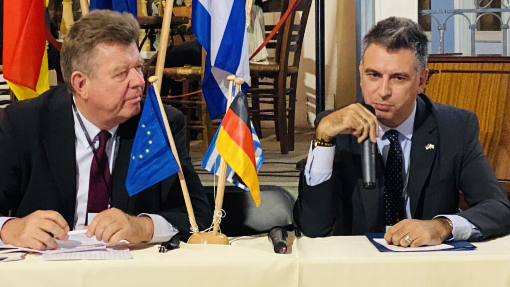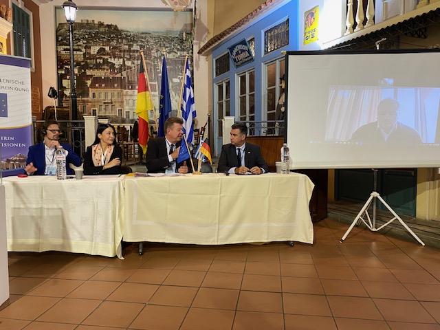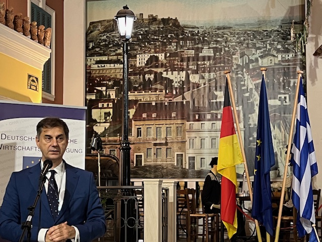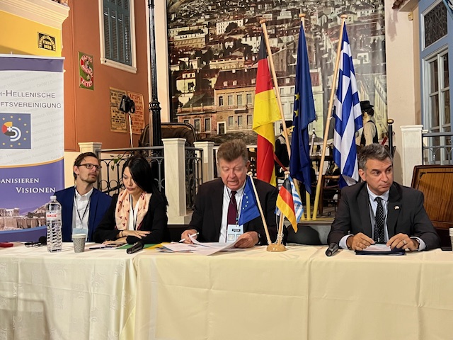 Der stellvertretende griechische Außenminister, Charis Theocharis, betonte, dass Deutschland und Griechenland ihre Herangehensweise verändern müssten, um besser auf globale Herausforderungen reagieren zu können. Man müsse „europäischer“ und „weniger national beschränkt“ denken. Die deutsch-griechischen Beziehungen entwickelten sich aus seiner Sicht von einer „traditionellen Partnerschaft“ hin zu einer „immer stärkeren, robusteren Zusammenarbeit“. Über die wirtschaftlichen Beziehungen hinaus sieht Theocharis eine „tiefe kulturelle und gesellschaftliche Verbundenheit“. So habe kein anderes Volk die griechische Sprache so intensiv gepflegt und studiert wie die Deutschen.