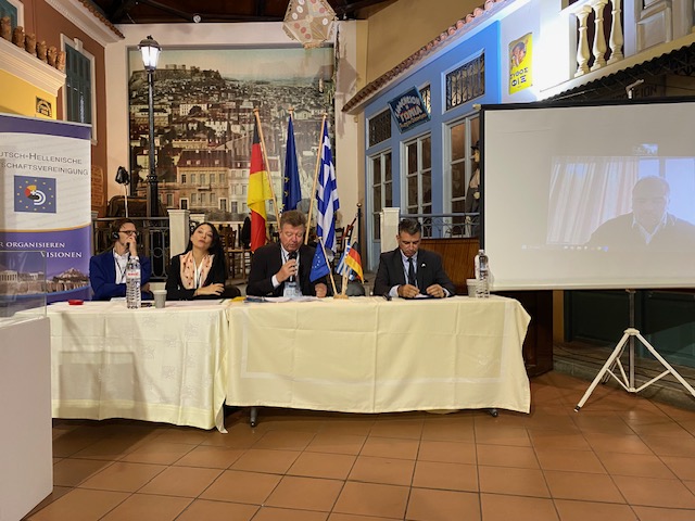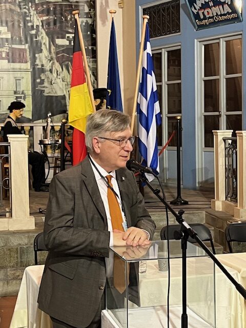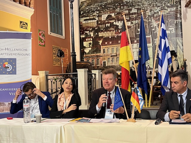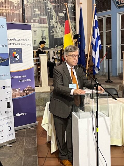 Andreas Kindl, deutscher Botschafter in Griechenland, bezeichnete die DHW als einen „wichtigen Partner zur Förderung von Partnerschaften“. Zudem stellte er fest: „Wenn Deutsche und Griechen gemeinsame Interessen vertreten, dann sind das neben deutschen und griechischen Interessen immer auch europäische Interessen.“ – Bei einem Festessen am Abend wurde Botschafter Kindl zum Mitglied des DHW-Ehrensenats ernannt.