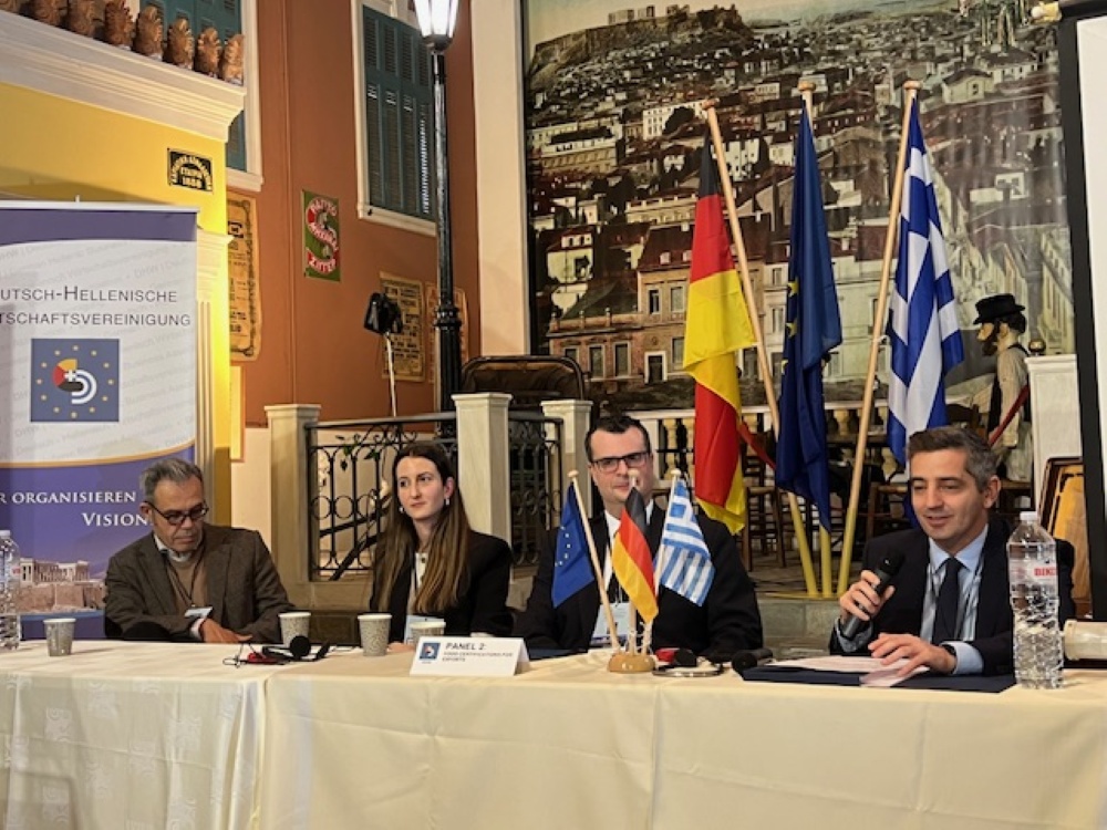 Die Deutsch-Griechischen Wirtschaftsgespräche am vorigen Freitag (21.11.) boten Unternehmerinnen und Unternehmern aus Deutschland und Griechenland die Möglichkeit zur Vernetzung und zum Wissensaustausch. Auf dem Programm stand ein breites Themenspektrum der deutsch-griechischen Wirtschaftsbeziehungen: insbesondere die Themen Migration, Nahrungsmittelexportzertifizierungen und Künstliche Intelligenz.